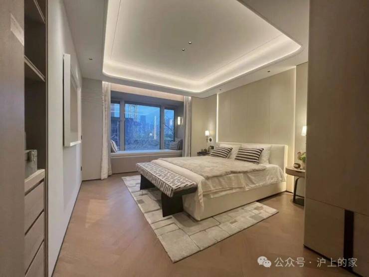 值得一提的是客厅西侧的双飘窗,采光和视野应该很棒,美中不足飘窗不够连续,当然已经处理得很好了,形成了一个比较完整的L型巨幕。