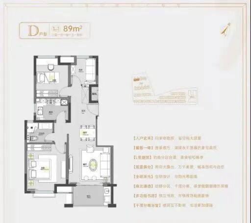 89㎡三居:总价约250万元起
