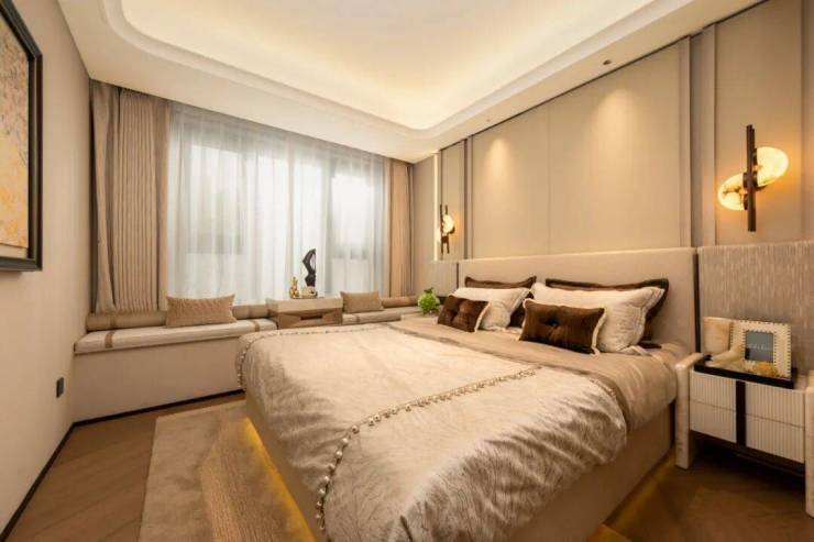 飘窗不仅可铺设大床,还能成为收藏品、艺术品摆台等,部分飘窗业主后期更可自行拆除,根据家庭需求拓展室内面积,让空间可塑性更强。