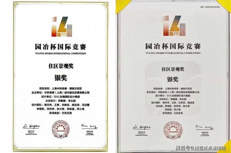 ▲中铁诺德·璟宸获第十四届园冶杯专业奖住区景观示范区银奖