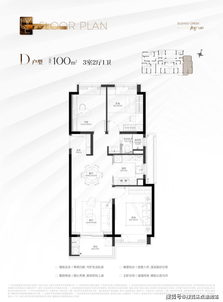 这个户型非常适合年轻小家庭上车!尺度上看,独立的玄关,仪式感与收纳功能兼具;餐客厅一体化+U字型厨房,布局合理;两房设计恰到好处。同时很好地控制了总价,千万级预算买进苏河湾核心位置的绝版机遇,地段控闭眼冲!