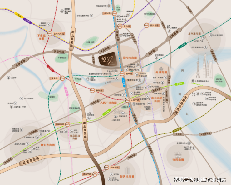 悦97售楼处地址位置:上海市静安区内环苏河湾畔核心区域,项目紧邻苏河湾滨水生态带