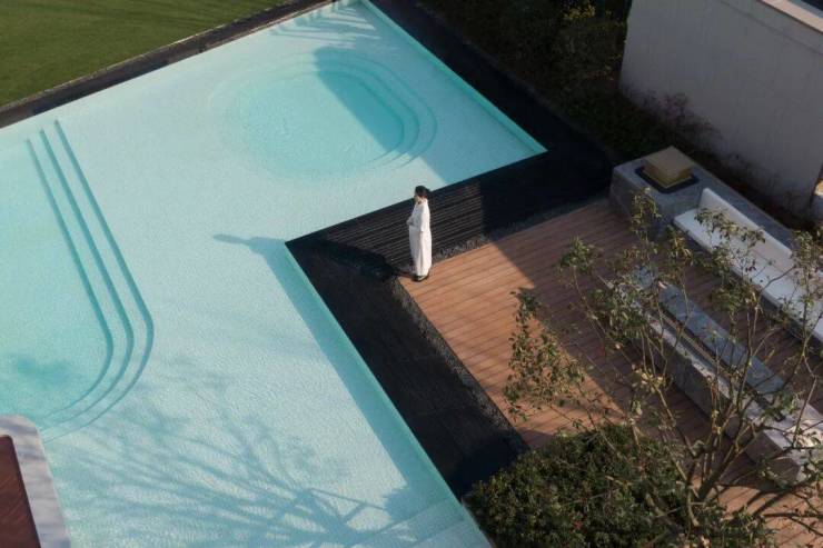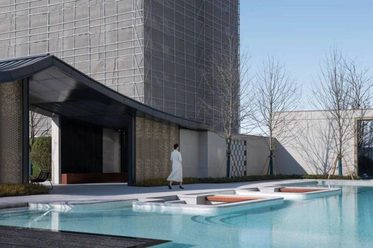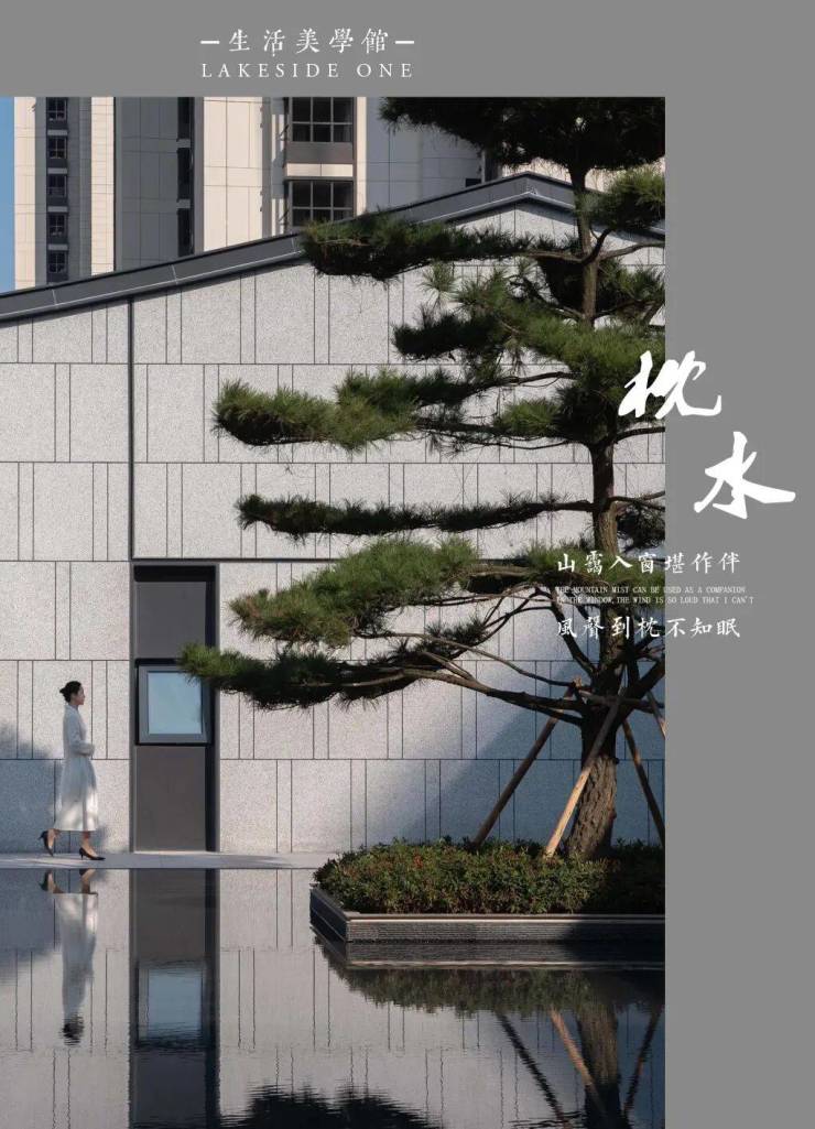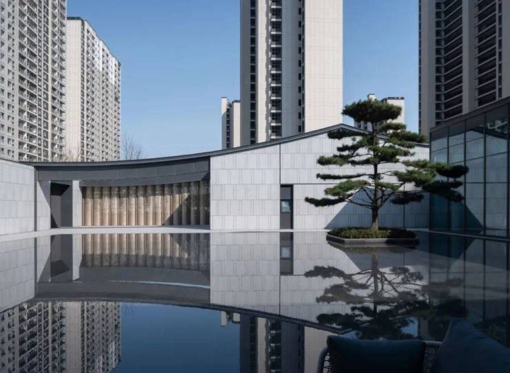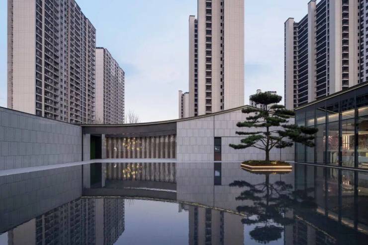 湖滨铂悦花园 ·生活美学馆,其景观艺术追求纯粹、简约、灵动的美学调性,这与建筑简洁、轻盈、留白的设计手法相呼应和统一。空间布局上以水为线索,通过现代手法重塑诗意江南的肌理与格局,剥离喧嚣,追求幸宁静祥和、幸福静谧之美。