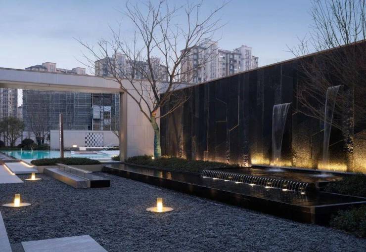 景观构筑与自然跌水相结合,
