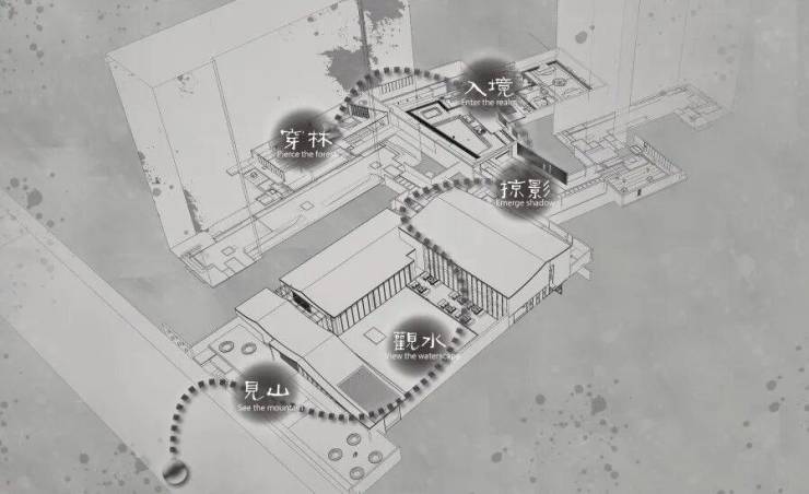 人行至处,似于画卷之上,形成“看与被看”的造景之趣。