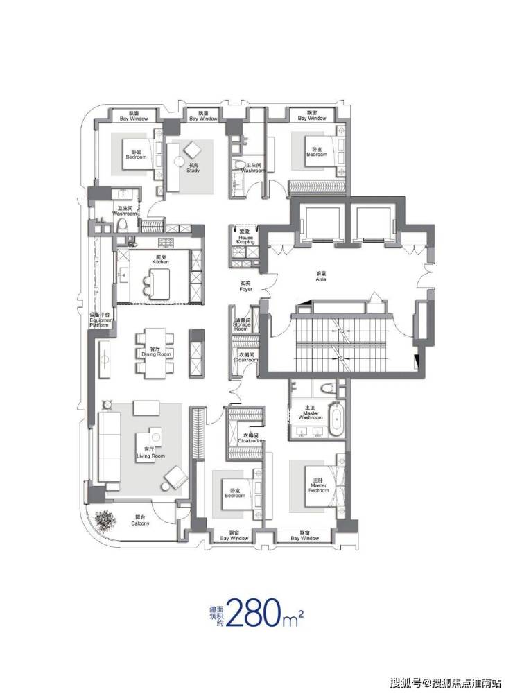 280㎡4+X房:内环内·大师定制艺术·全功能性奢宅;边套270度舒适采光,超大舒适厨房,五房空间尺度、可根据自身需求调整功能;3700-4000万,尊崇功能五房,满足现有市场多孩客户需求,可随时更改室内功能性;客阳台一体,边套270°舒适采光;