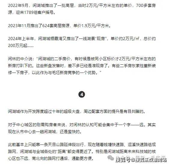 二是闲湖城所处的闲林板块南侧,整个板块的供应量大,楼盘品质大多平平。住宅楼盘基本上都是高层加低密的大盘,其中高层住宅的定位是中心城区的外溢刚需,客源竞争激烈,去年以来闲林诸多二手房小区的成交价基本都处于低谷。