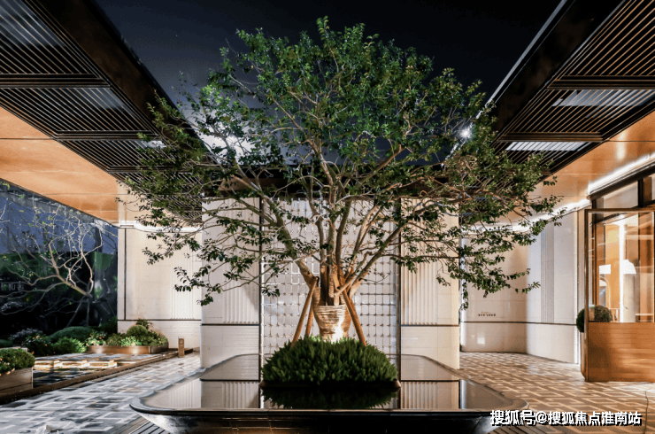 社区大堂门口,还全冠移植了树龄超60年的铁冬青,缔造林下空间!