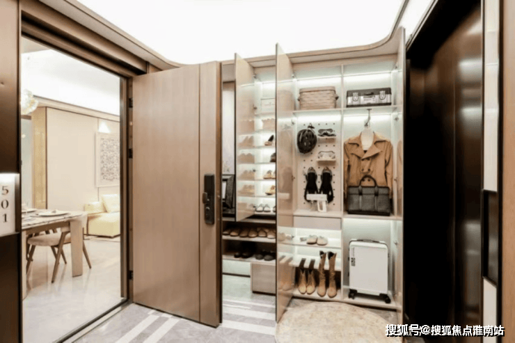 电梯开门进入后,有一个约6-8㎡的私人入户玄关,这个是不计入产证面积的,相当于免费赠送了个使用空间!