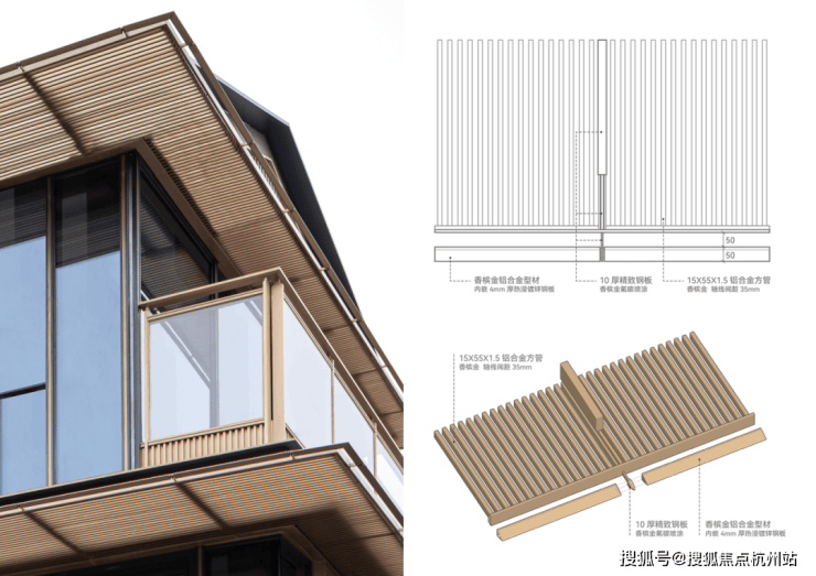 ▲单元化金属格栅的出檐部分