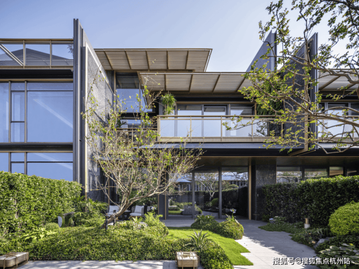 出檐部分的单元化金属格栅,使建筑整体体量更显轻盈与丰富,同时兼顾露台的遮阳和私密性需求。