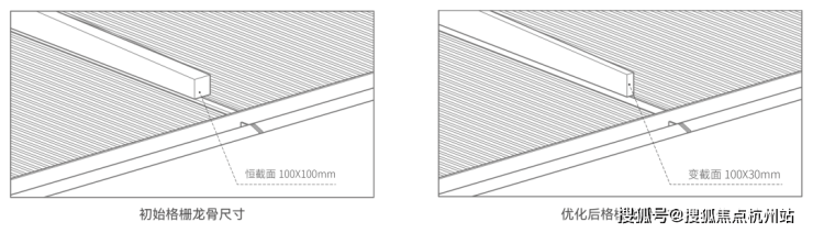 ▲ 格栅龙骨尺寸前后对比