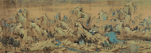 在北宋著名画家赵伯驹的经典山水画《江山秋色图》中,重山复岭间点缀着亭台楼阁、飞瀑激流与竹溪村路,生动展现了顺应自然、因形就势的建筑布局,以及小桥流水的园林造景。该画作不仅反映出了宋代文人所追求的深邃静谧、天人合一的空间意境,还体现了宋人不拘一格、用色丰富大胆的艺术精神。