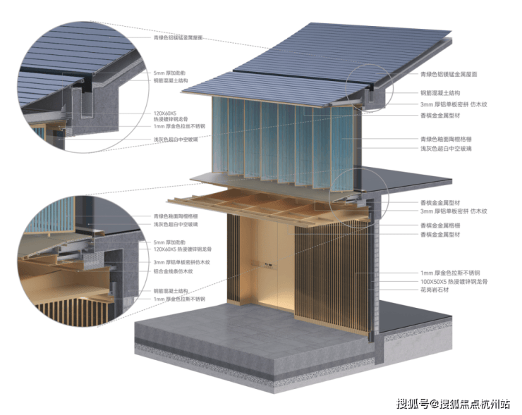 宋代建筑成就精致,强调结构与细节的巧妙。在五彩墅的设计中,我们通过立面和构造的精细化设计,以当代材料和工艺的精致与巧妙的细节,既对话传统美学,也为现代居住体验赋予视觉和触觉的丰富感受。