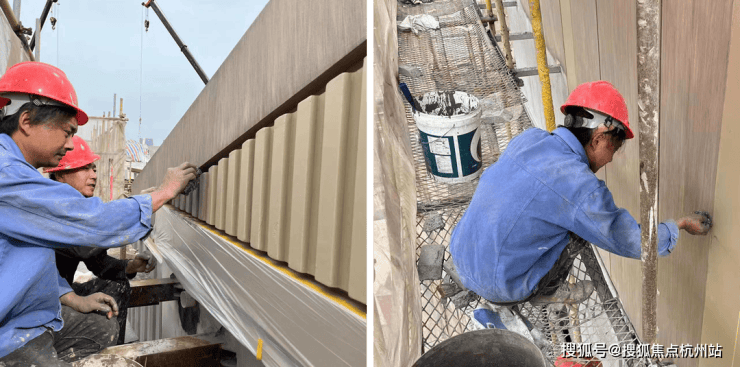 ▲仿木纹涂料施工过程