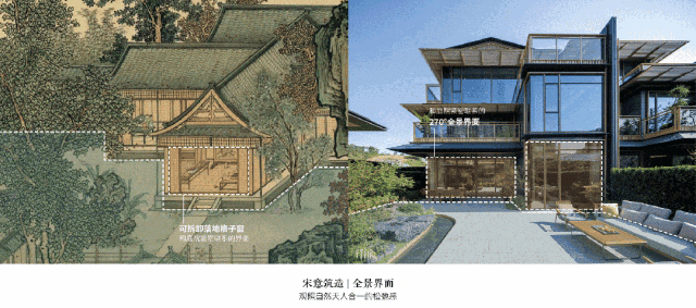 宋韵美学,大师操刀:由朱培栋博士执笔,提取《江山秋色图》元素,打造宋风合院意境