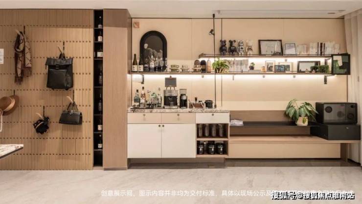 从进门开始,到电视机墙旁边的日咖夜酒吧台,都被设计成了储物空间.