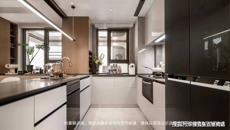 U型厨房,做成半开放式的,实际交付会有移门.