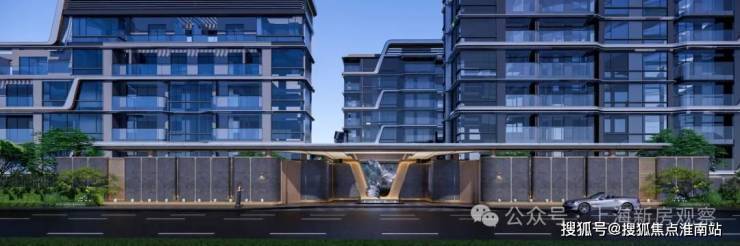 约100米的归家界面采用蓝翡翠镜面奢石,搭配范思哲黑定制水景,每栋楼配备独立入户大堂,结合五轴纵享花园,为业主打造尊贵的归家体验。