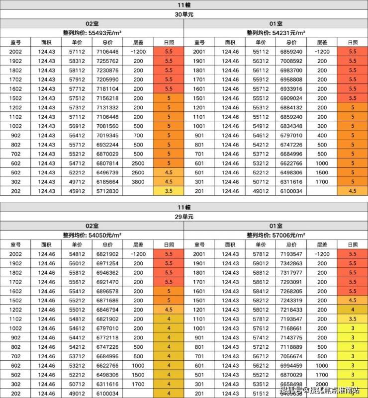下图我将11号楼的楼层跳价和冬至采光时长做了结合,3点注意: