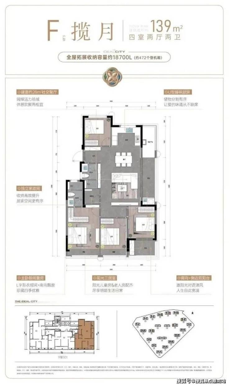 建面约107㎡户型,则把重点放在舒适度上。阔绰方厅+双联阳台,通风赏景至佳,还有U型厨房,三面操作空间,动线流畅好用;套房式主卧更配置了步入式衣帽间,独立卫浴设计,保证了主人家的隐私和仪式感。