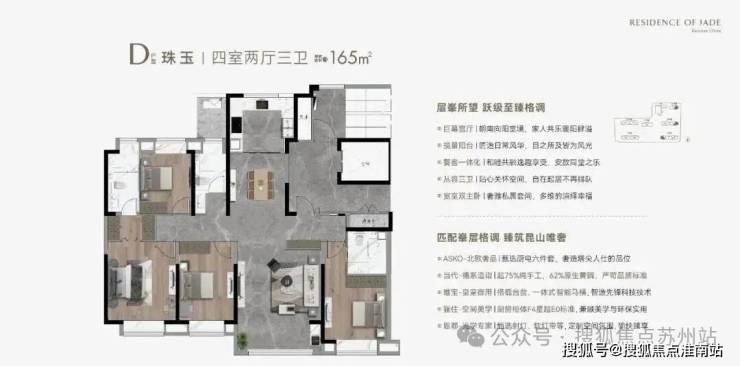 D户型 珠玉丨四室两厅三卫 建筑面积约165m²