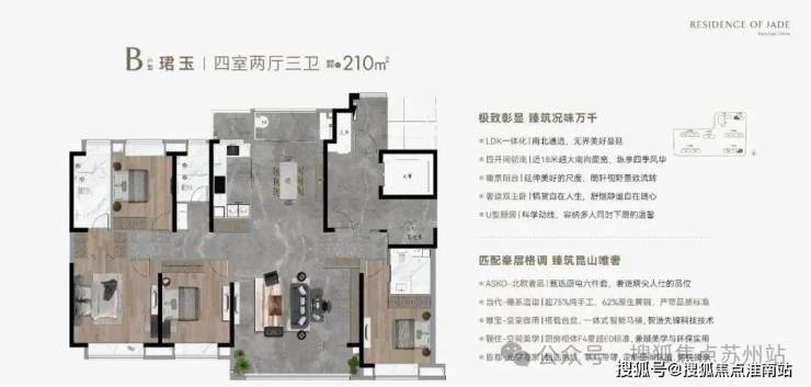 B户型 珺玉丨四室两厅三卫 建筑面积约210m²