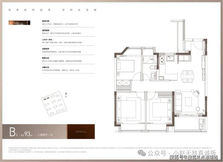 主力户型是建面约93㎡3房,共56套, 总价预计460-540万 ,抢占中间楼层仅需500万左右(含案场优惠)。