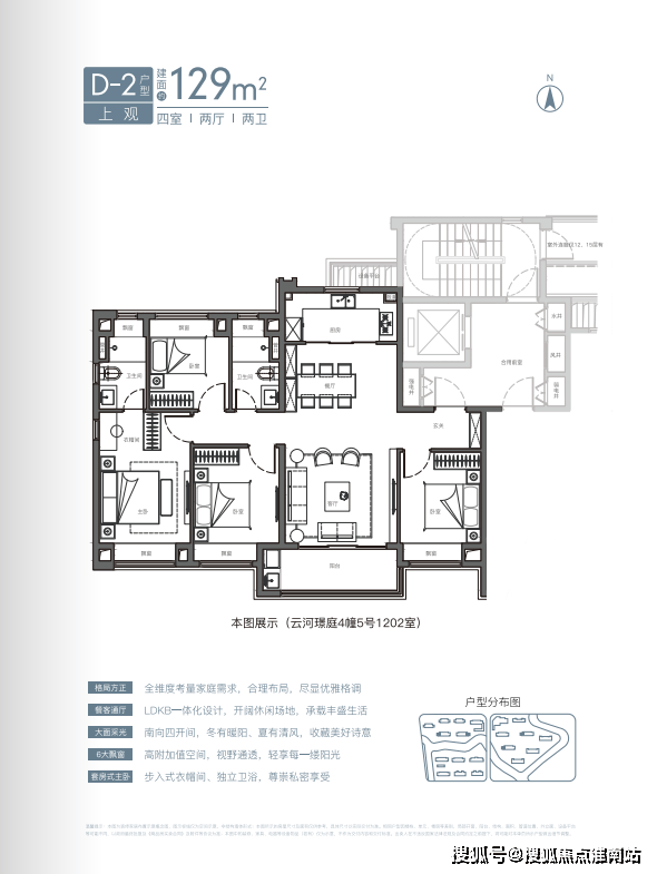 预算充足的小伙伴可以选建面约129㎡四房.