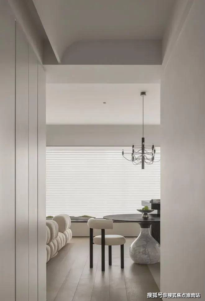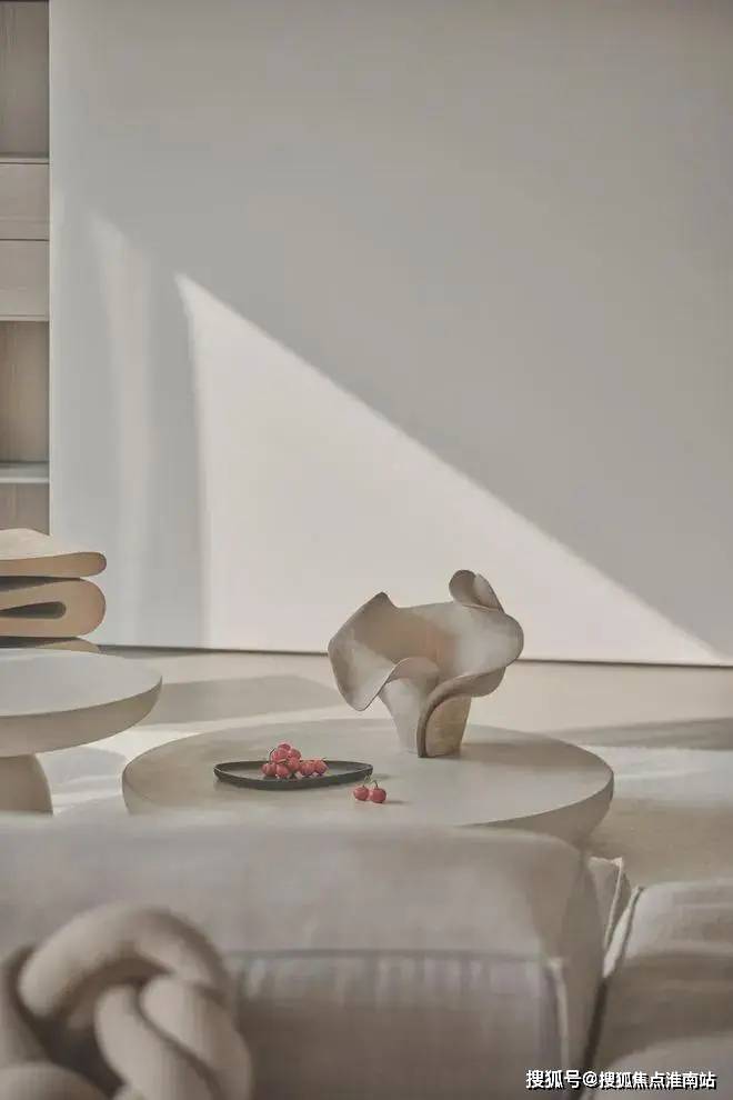 凭借温柔的弧形,优化了原始梁柱的琐碎感和锐利感,与木元素或纯色调糅合,让光影自由地流动。以玫瑰为灵感创作的单椅装点一隅,贵雅无比,茶几以叠层魅力与之对话,达成酝酿风雅的共识。