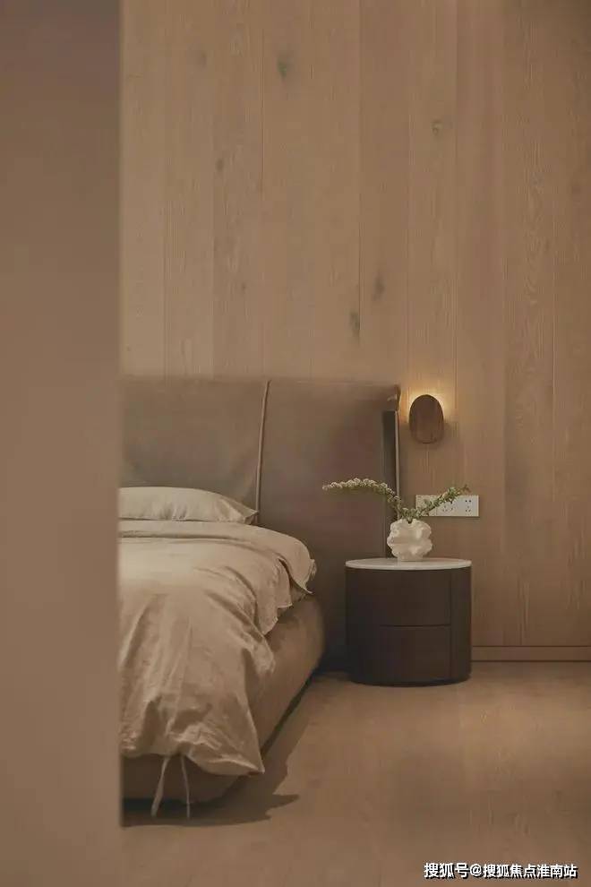 设计师为床体打造了“凹槽”,展现了家的安稳性,同时赋予了墙面细腻的叶片,来点缀空间的自然之意,让生活的意境更具浪漫的成分。