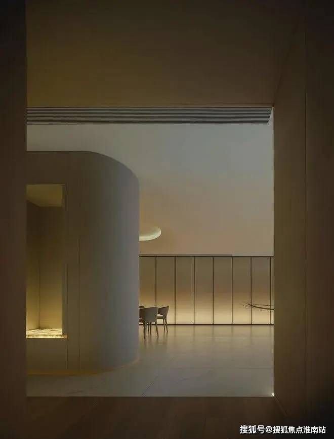 平顶部采用白色为主,呈现出清爽通透的氛围,使空间更具活力。通过合理整合零散破碎的空间,建筑的理性美与浪漫体验得到了平衡,实现了内外空间的自然对话,让人感到舒适宜人。