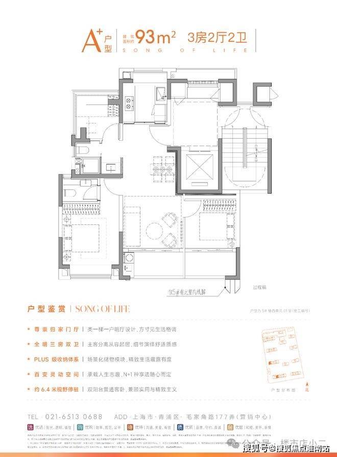 建面约91㎡3/2/2,小户型也有大格局