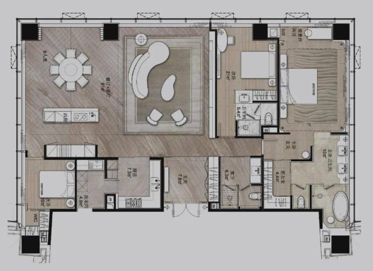 建筑面积约335㎡ 梦幻都会风格 三房两厅三卫 邱德光大师执笔