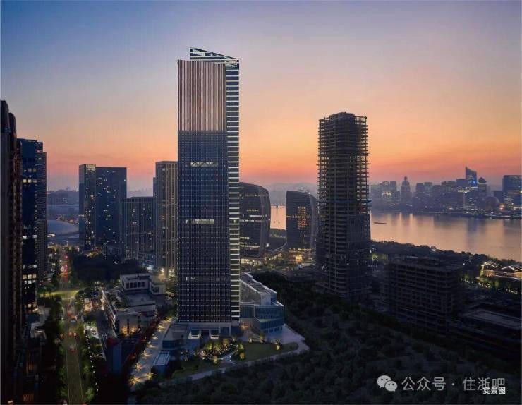 项目直线距离钱塘江约450M,以约90万方恢弘体量、约240米天际高度,满足世界峰层人物精神欲望的最高向往,成就扛鼎杭州江岸华宅的全球天际资产。