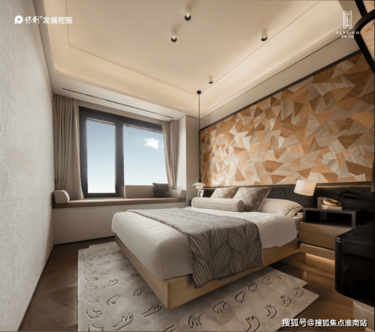 保利天奕售楼处电话☎:400-998-9694 主卧套房还是270°转角飘窗,可以充分观赏窗外景色。同时,飘窗空间也可根据主人需求,随心打造成居住者想要的模样,休憩放空、阅读品茗、游戏娱乐等等······