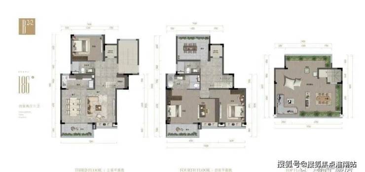 项目规划了21幢叠墅(一二层为下叠,三四层为上叠),层高约3.2米,户型面积规划为140/160㎡、176/186㎡。