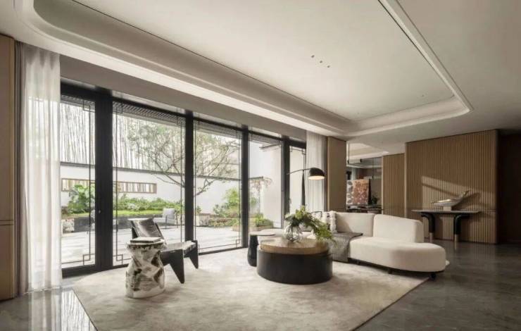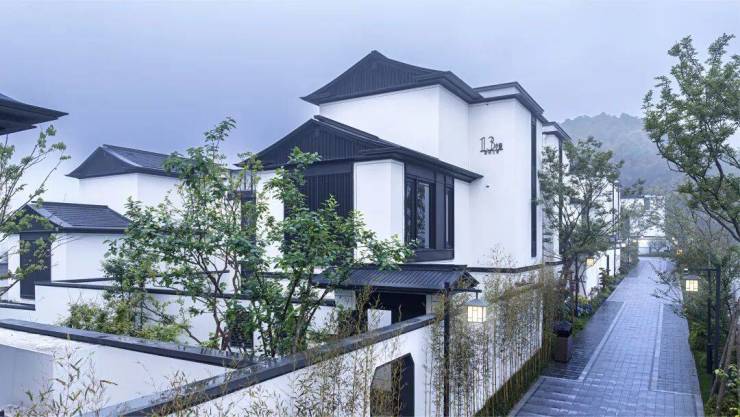 有别于传统中式的冷寂,仙女湖小镇的院墅产品呈现出更为经典的当代感。比如,中式大屋顶抽象为简约轻巧的形态韵味;院墙在保留山地民居情怀的前提下,以石材与玻璃等材质,顺应山势呈现出独特的时代气息;门窗在传统范式基础上,增大了开间尺度,尽可能将阳光与风景迎入室内。