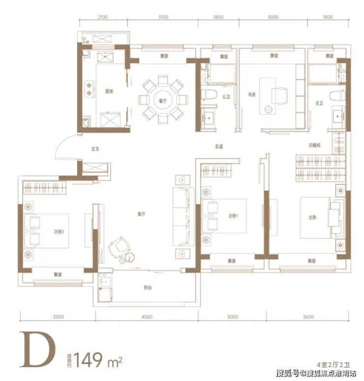 建面约136㎡客厅宽达 4.5米,主卧宽 3.5米,次房间分别达 3.1米、 3.4米,独立餐厅,靠窗南北通透。