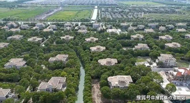 形成1个半岛+13个小岛的分布格局,还在公路旁种植具有观赏和隔音作用的树木,西侧的花墙长达一千米多,力求成为一个一面临山、四周环河、安然静谧的佘山别墅“世外桃源”。