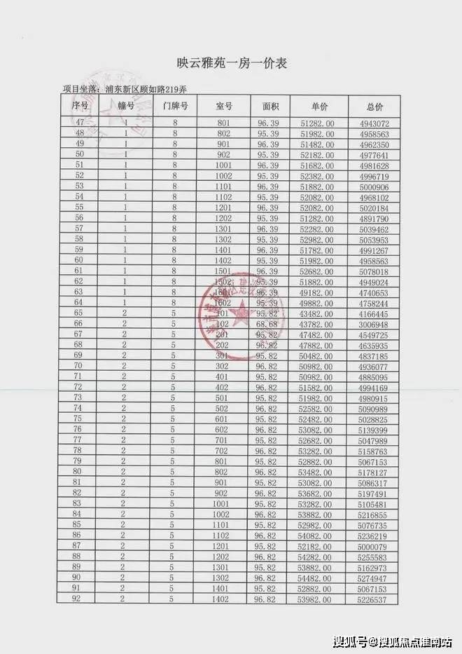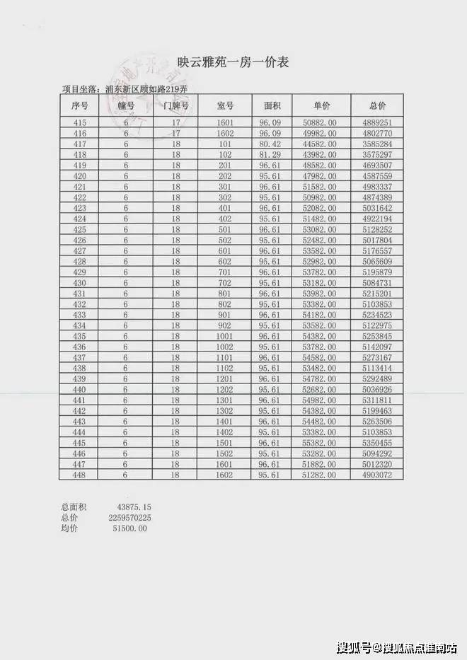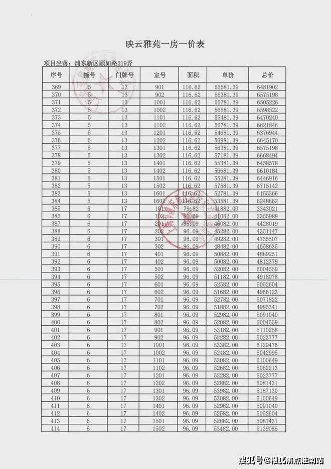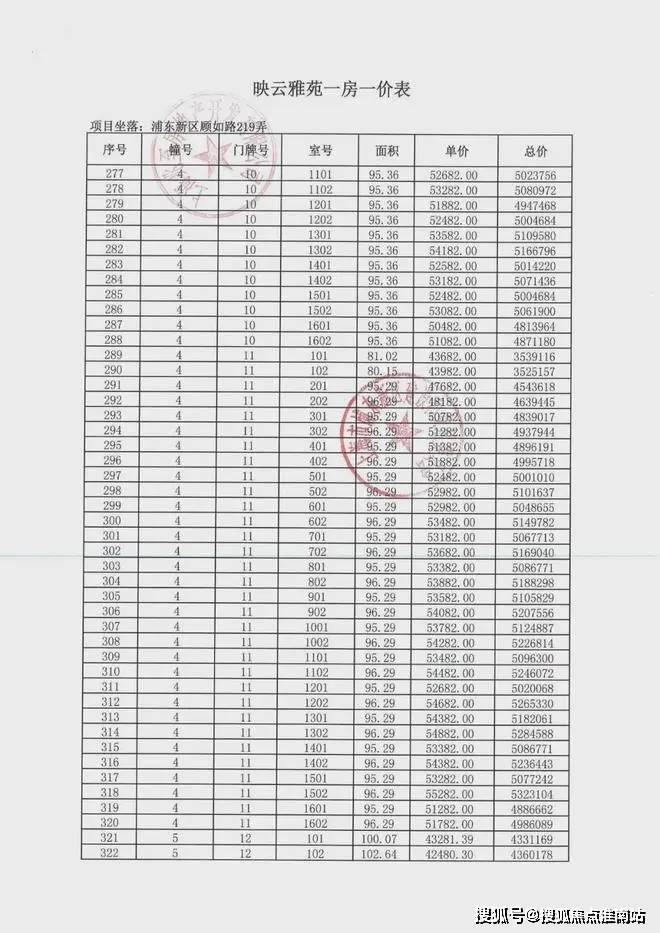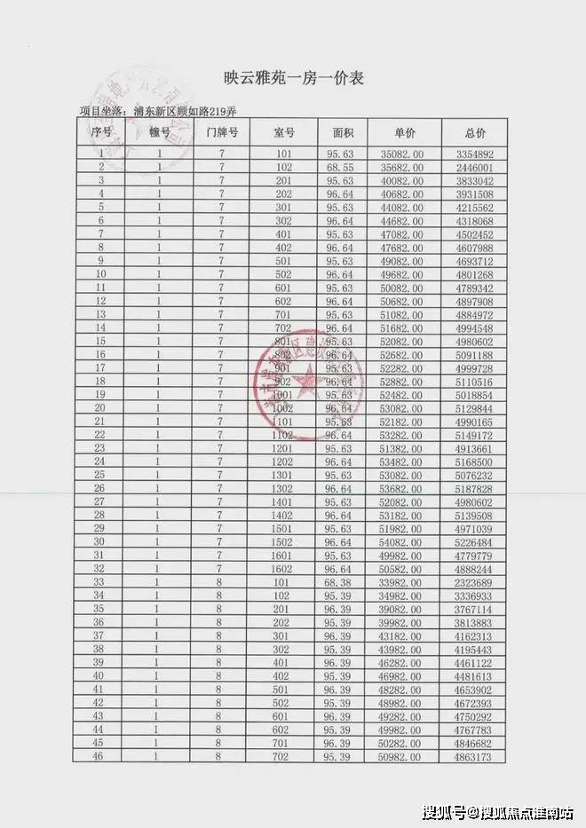 项目一房一价表▼