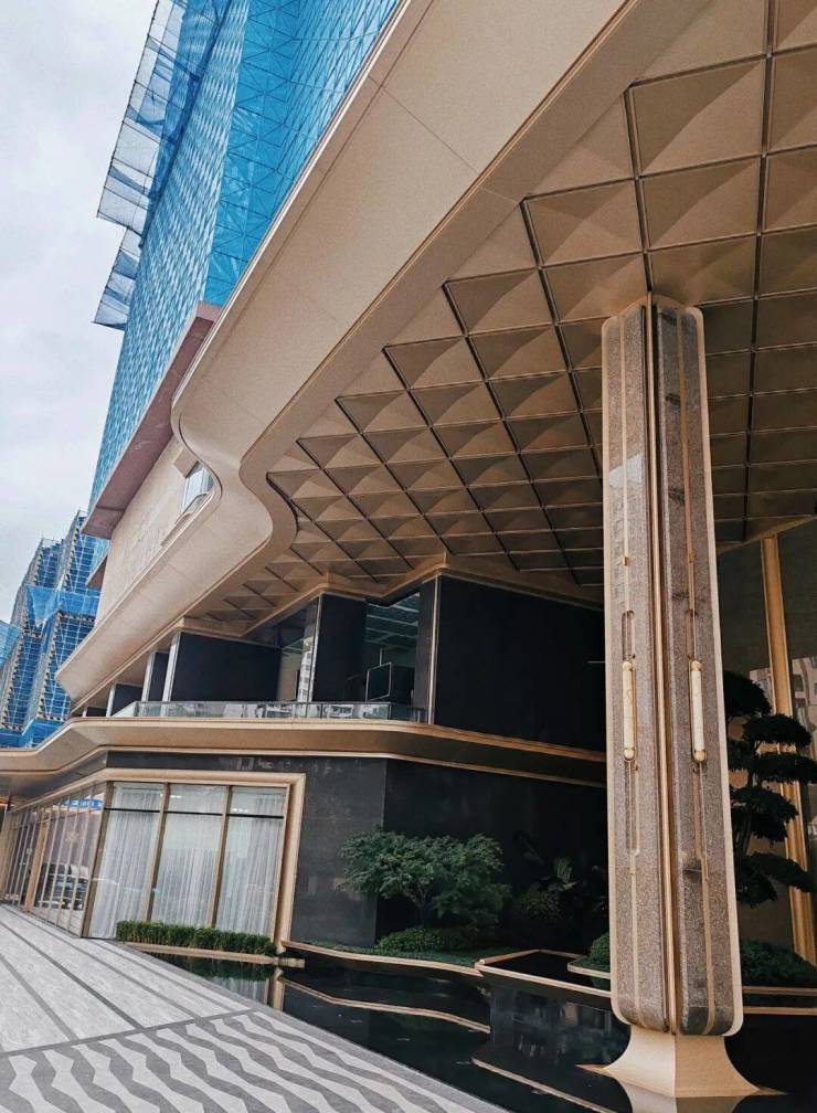 主入口位置横向宽度约70m,纵高9m,通过鎏金色调加注奢阔视觉效果,举目望去如华贵天幕徐徐展开,让人忍不住加快脚步,一探究竟。