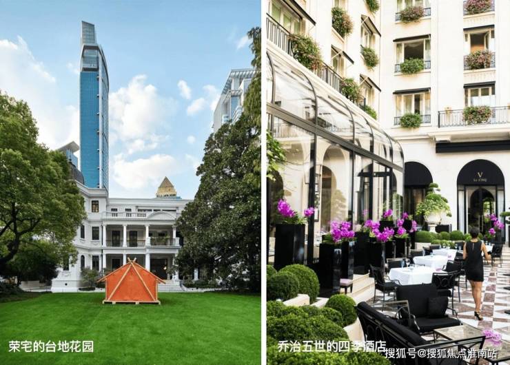 景观设计上,借鉴巴黎乔治五世四季酒店玻璃廊架设计灵感,与荣宅中经典而雅致小花园设计,营造古典与现代,繁华与静谧共融的花园之境。