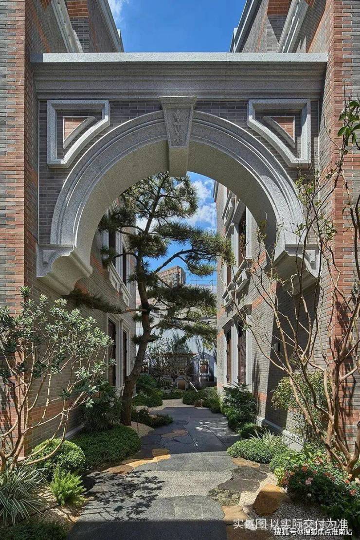 拱形门坊及雕花复刻湖州会馆、菱形山花元素还原老建筑印记、巷道风貌铺装叠加红砖清水墙赓续衡复风貌,演绎百年摩登风尚。