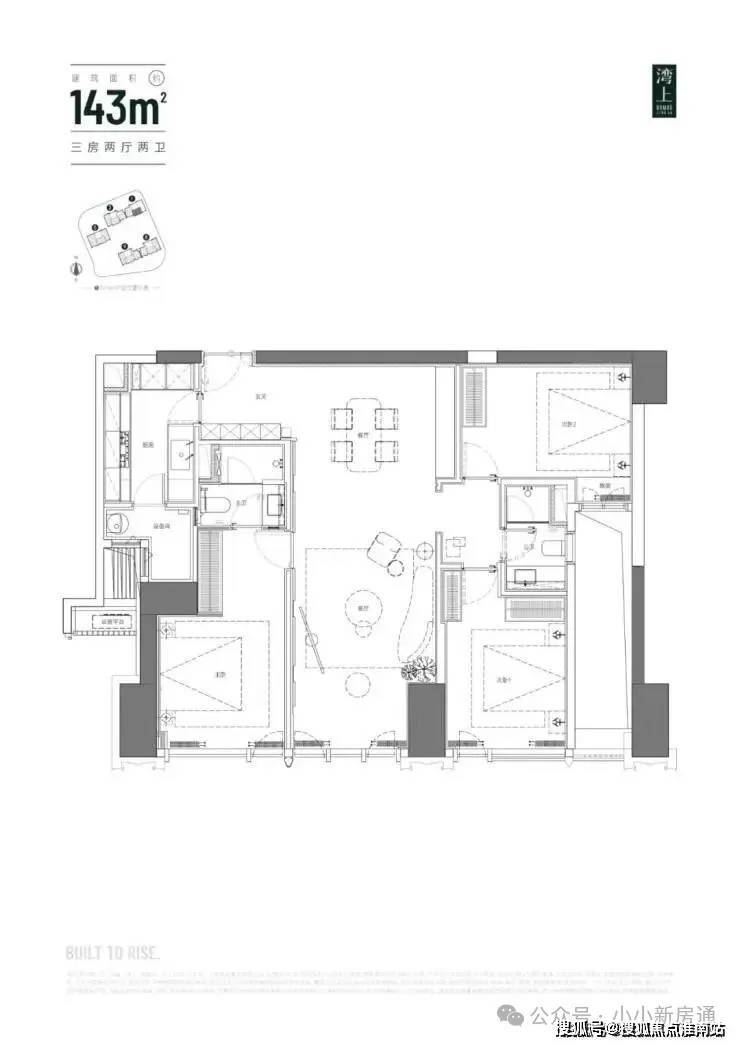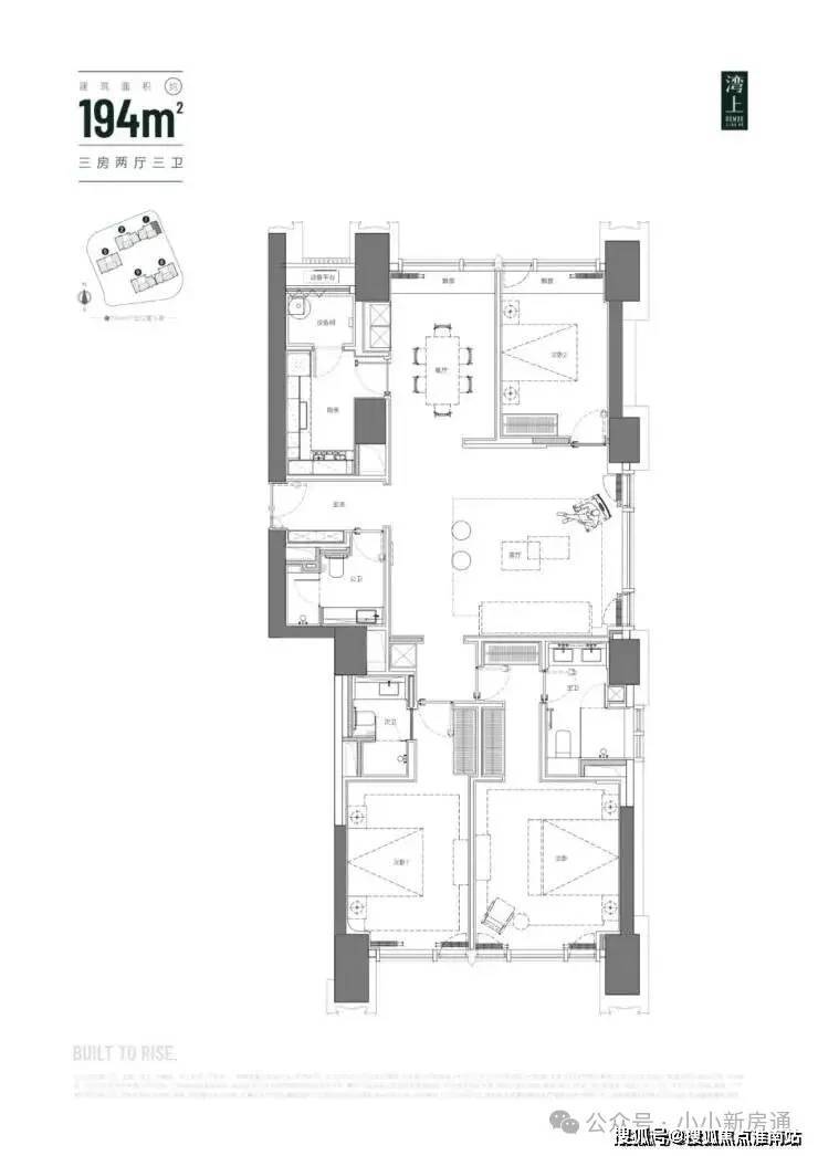 主推建面约 150 - 256㎡纯粹大平层,三梯三户,层高 3.3 米,空间开阔大气。