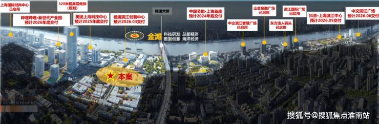 地理上看,中铁杨浦滨江项目直距黄浦江岸约500米,周边是星空华文、美团上海科技中心、B站总部、超级合生汇等头部项目。
