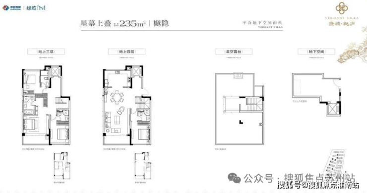 叠墅产品(约140㎡起):4层叠拼设计,上下叠独立入户互不干扰,根据公示上叠客厅位于四楼,兼顾功能性与私密性;