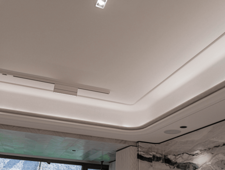 除此之外,在细节方面,项目也是不遗余力:比如,全屋智能也同样是交付标准,大量场景预设,让科技改变生活,值得一提的是,这一次项目更是设置了多个智能吸顶音响: