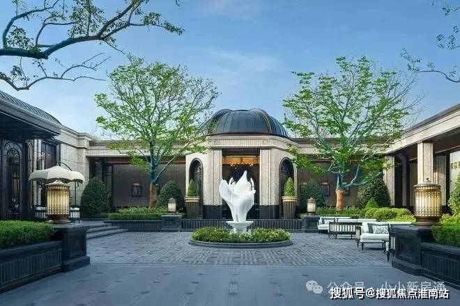 玉兰门庭 」摩登飘逸,环抱式落客前场,大师定制 非遗掐丝珐琅门钹,流转温润光华,敬呈归家尊崇礼序,自此启幕生活的华贵序章。