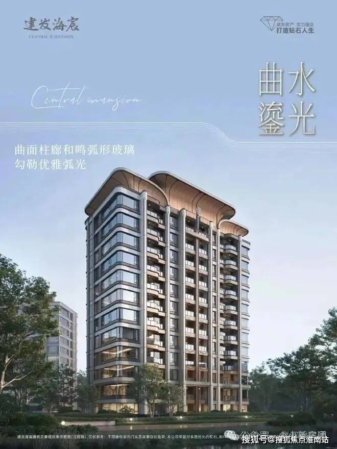 建发「宸系」中式作品,铝板与玻璃幕墙外立面,配园林景观。约1150套房源高低配,限高40米,含小高层、洋房、叠墅产品,满足刚需与改善需求。